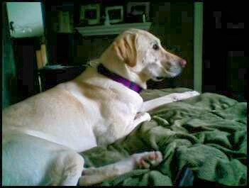 We've been working on "Colie stay" and "Colie come" and she's excellent; not so excellent on "Colie come" when she wants to play outside in the yard. Finally, a total bed hog!!