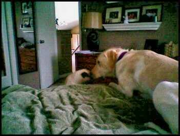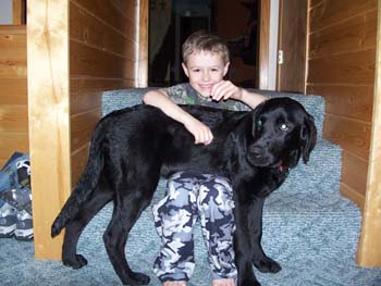 The grey squirrel looking for morning dry cereal was quite surprised this a.m.! My 5 year old grandson and Colie are already best buds.
