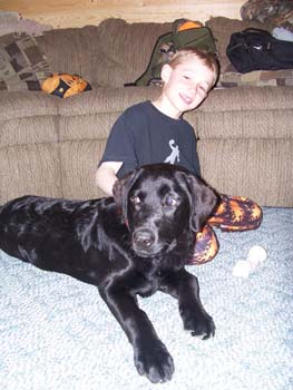 When we were lucky enough to adopt Carter from your facility I stated that I'd let you know how he's doing. Well he's great! We had him potty trained in a month and I taught him to sit & shake in a matter of hours, with the help of treats of course. He's great with our three children ages, 5 yrs, 2 yrs, and 11 months. He likes to play with our cat, he has the run of the house, and now our backyard since we just finished putting our fence up. My parents have a lake cabin that we go to about every other weekend, so he is getting used to the water and loves to run through the 4 wheeler trails. The other day I trimmed his nails, brushed his teeth, and brushed his hair and he didn't even make a peep. Our family couldn't have asked for a better, cuter, more well behaved dog.