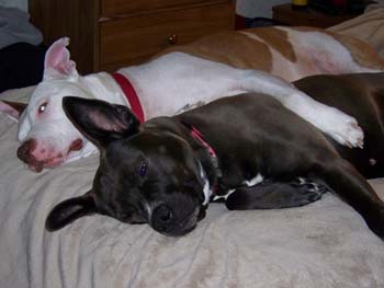 I just wanted to write and give you a quick update on Lola. Since her adoption just before Thanksgiving, she has been a joy to be around and is certainly the light of Ziggy's life. She has experienced a few minor issues, probably from bad experiences in her "previous life" but has overcome them and is very comfortable in her new home. She and Ziggy are pretty much inseparable now, and do everything together (including visits to the vet). She loves to go on long walks and just went for her first ride in the Polaris Ranger with Ziggy and I. She will be getting some pink "doggies" to wear on her rides, as Ziggy always wears his red ones.